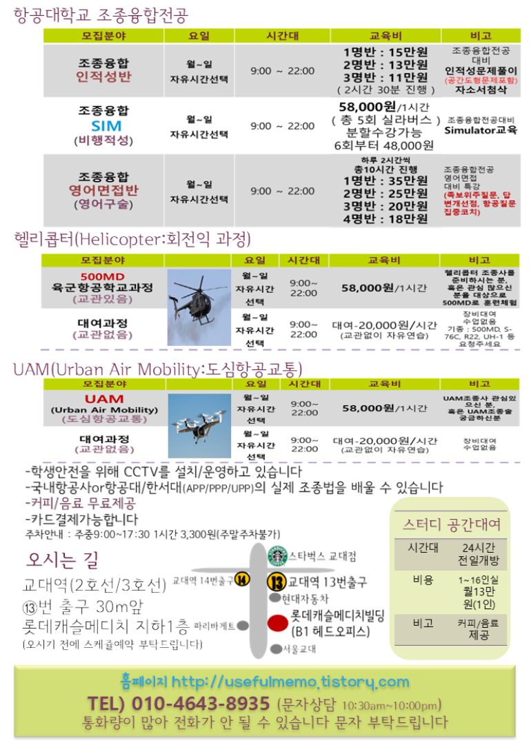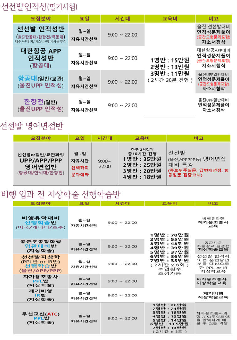 3. 영어면접 : 교대역조종사학원에서 선선발영어면접반(일반과정인경우 항공대일반or교관/한항전일반반) 수강(아래그림참조)