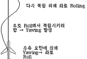 경사가 지면서 동시에 항력으로 인하여 반대방향으로 Yawing 현상이 발생함