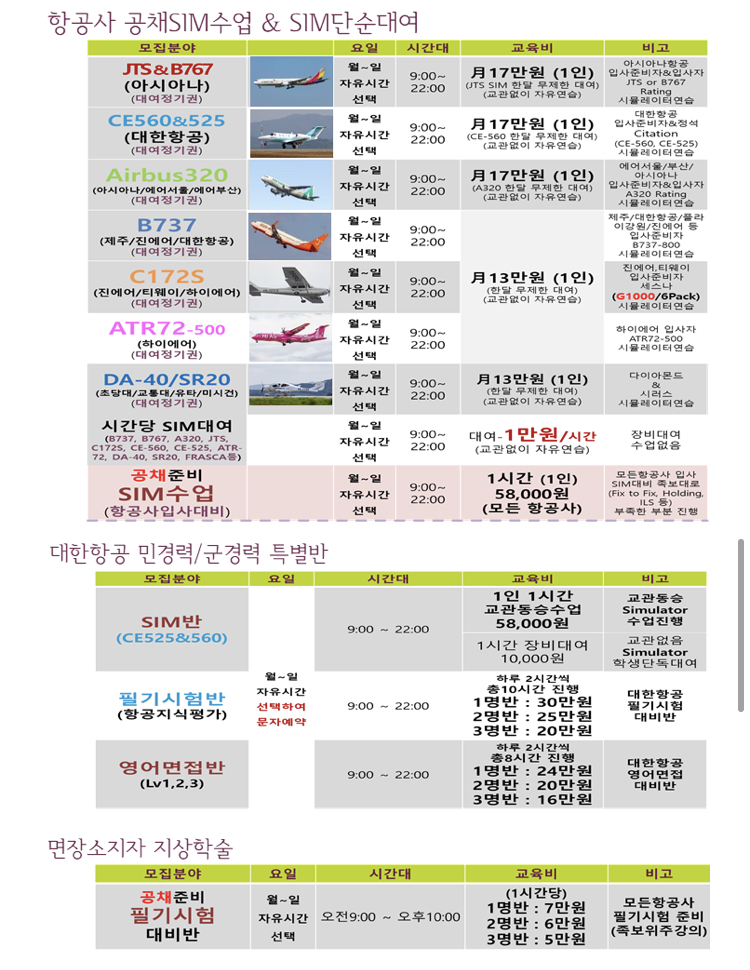 앞으로 있을 대한항공 조종사 공채과정과 Citation 정석과정 훈련목적으로 사용할 예정입니다.