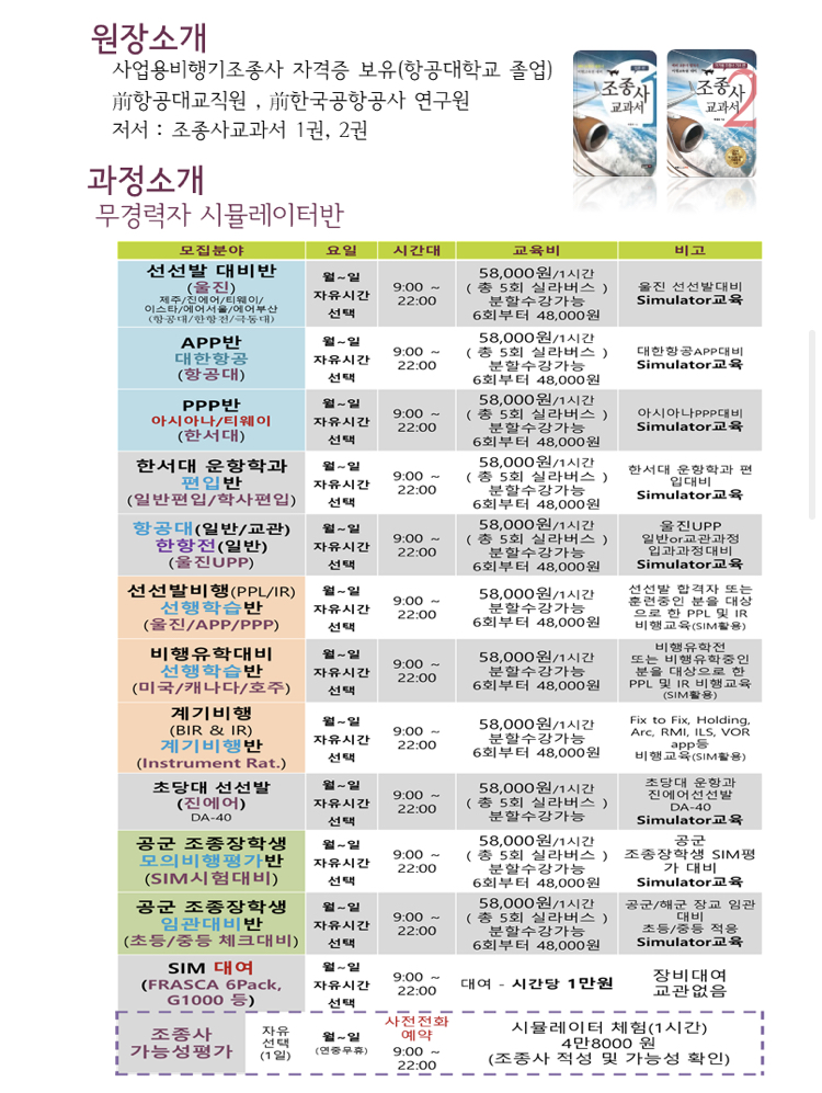 앞으로 있을 대한항공 조종사 공채과정과 Citation 정석과정 훈련목적으로 사용할 예정입니다.