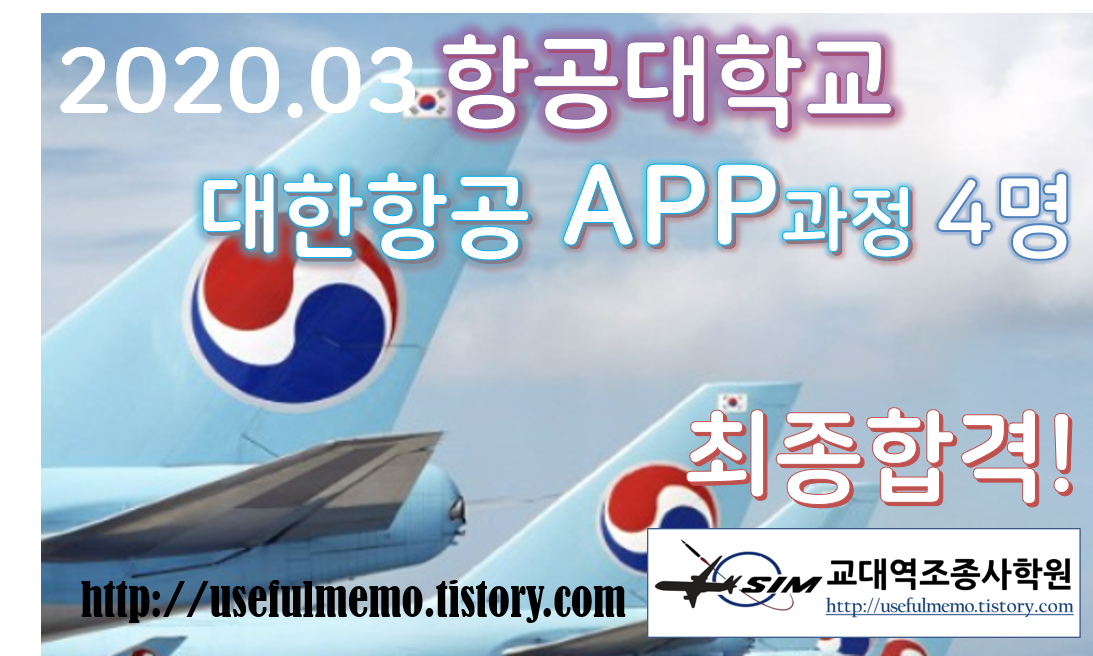 | 대한항공 APP(항공대)과정 4명 전원합격! (여학생 1명 포함) (0) | 2019.12.24 |