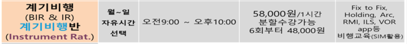 다음과 같이, 계기비행 SIM반을 개설하였습니다