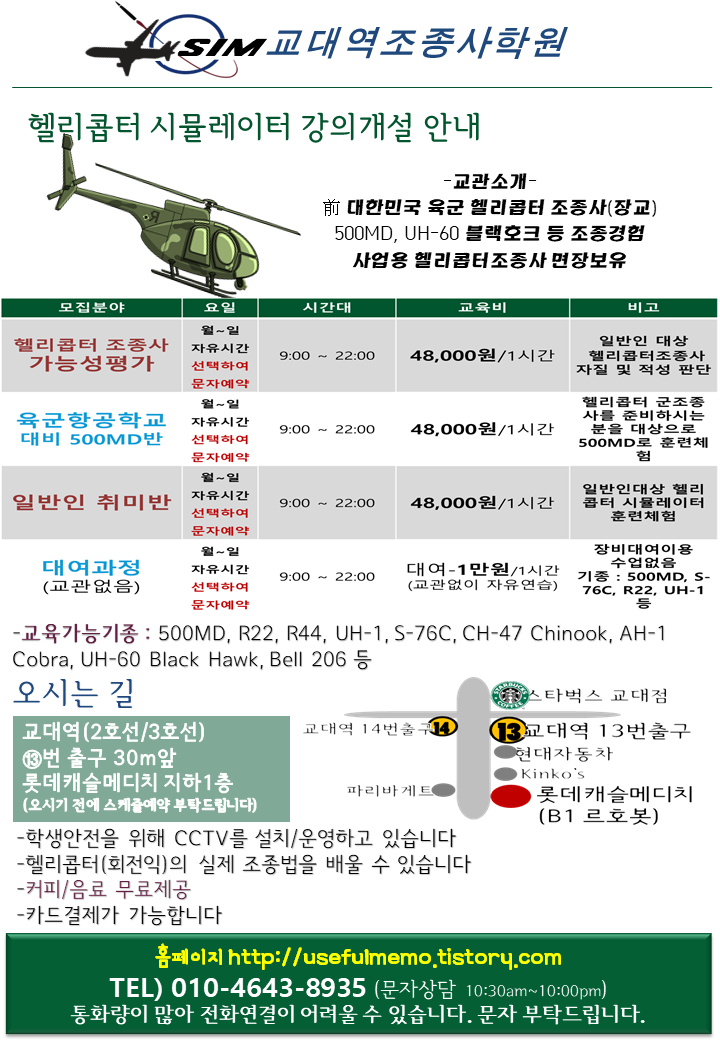 '시뮬레이터 소개(교대역조종사학원) > 헬리콥터(회전익Helicopter)' 카테고리의 다른 글