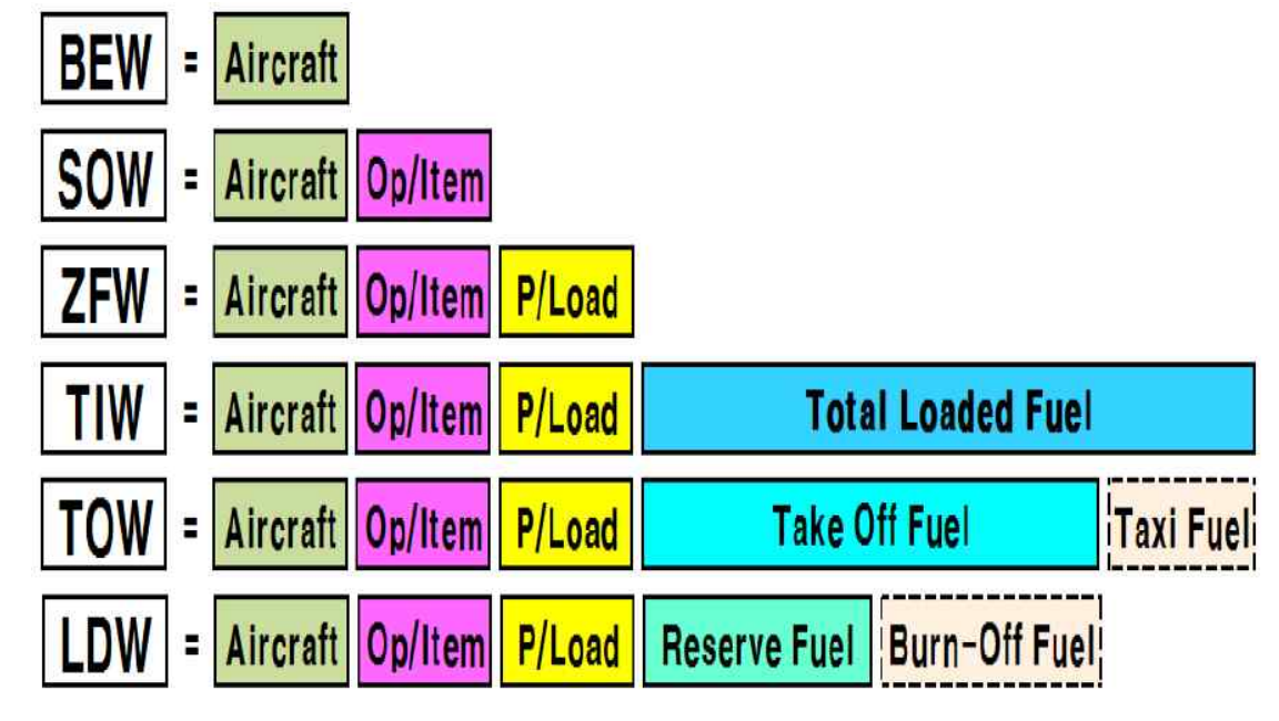 ※ OPERATING EMPTY WEIGHT(OEW) / BASIC OPERATING WEIGHT(BOW) / DRY OPERATING WEIGHT(DOW) 라고도 함