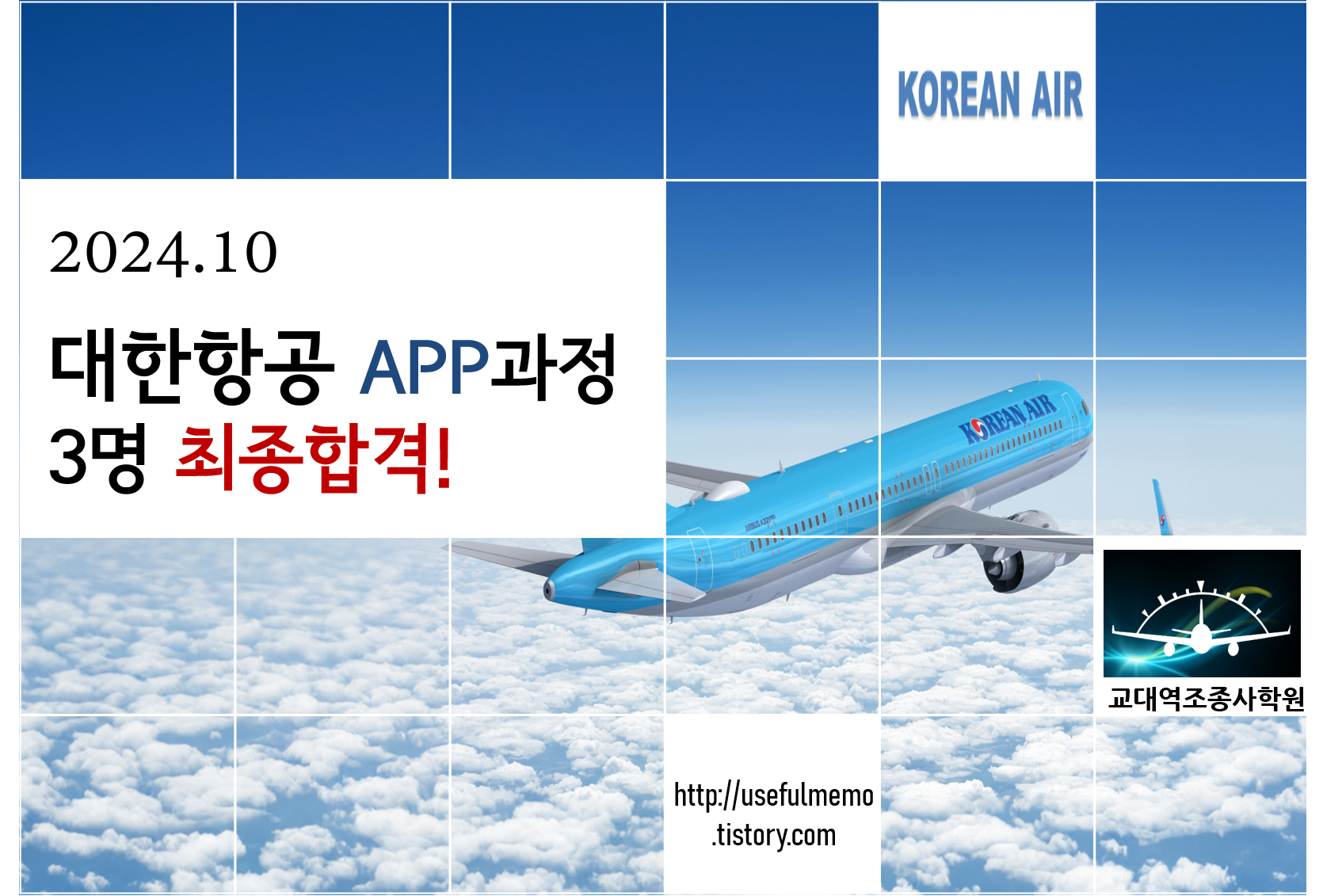 | 대한항공 APP(항공대)조종사과정 총6명 최종합격!! (2) | 2024.03.17 |